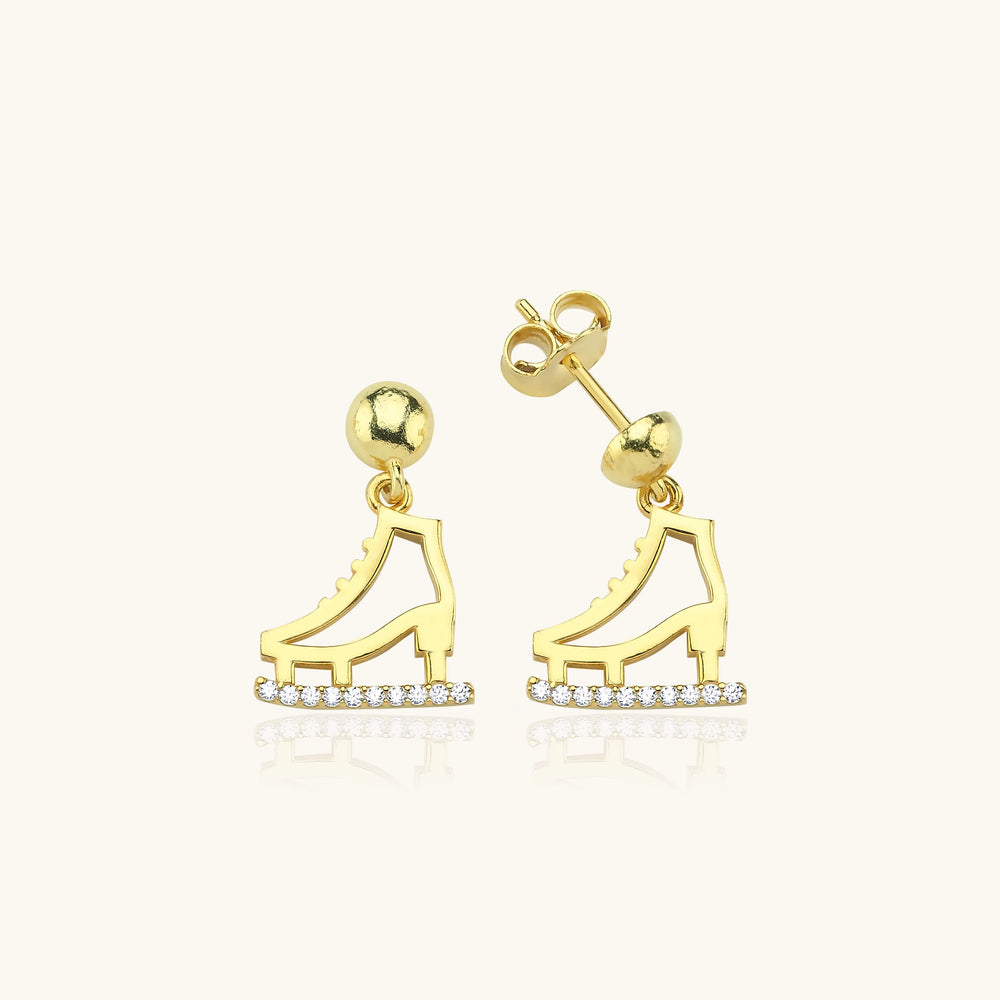 Gold Ice Skate Dangle Earrings with CZ Stones | 925 Sterling Silver | Winter Wonderland Jewelry