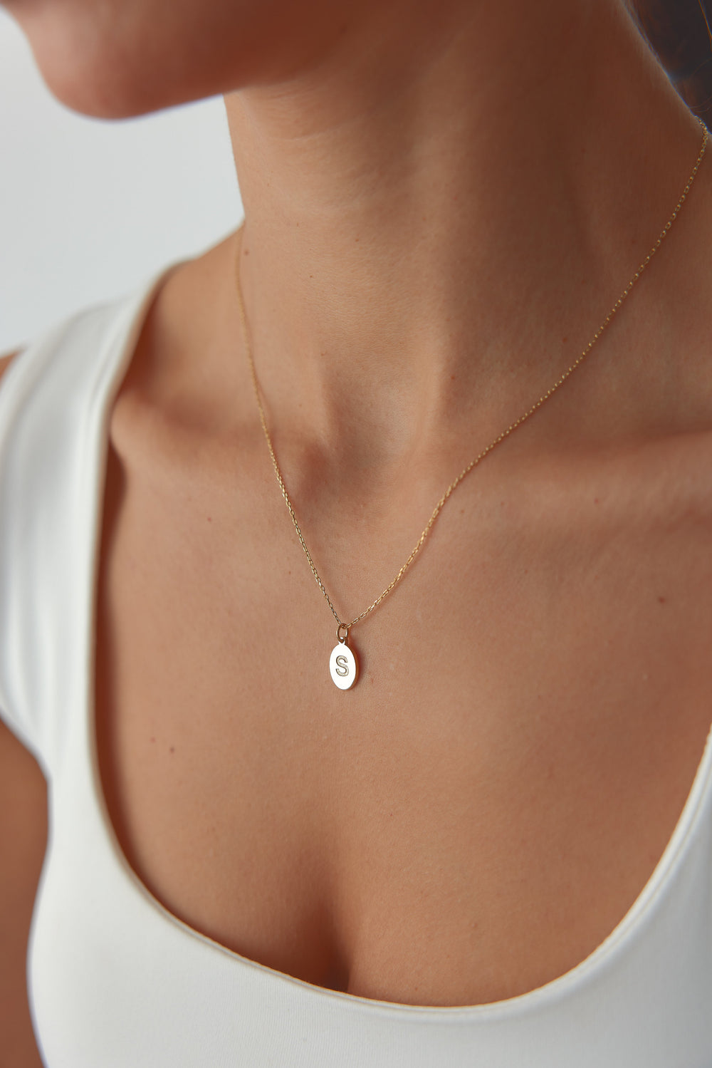 Gold Oval Initial Necklace | Personalized Letter Pendant | 925 Sterling Silver