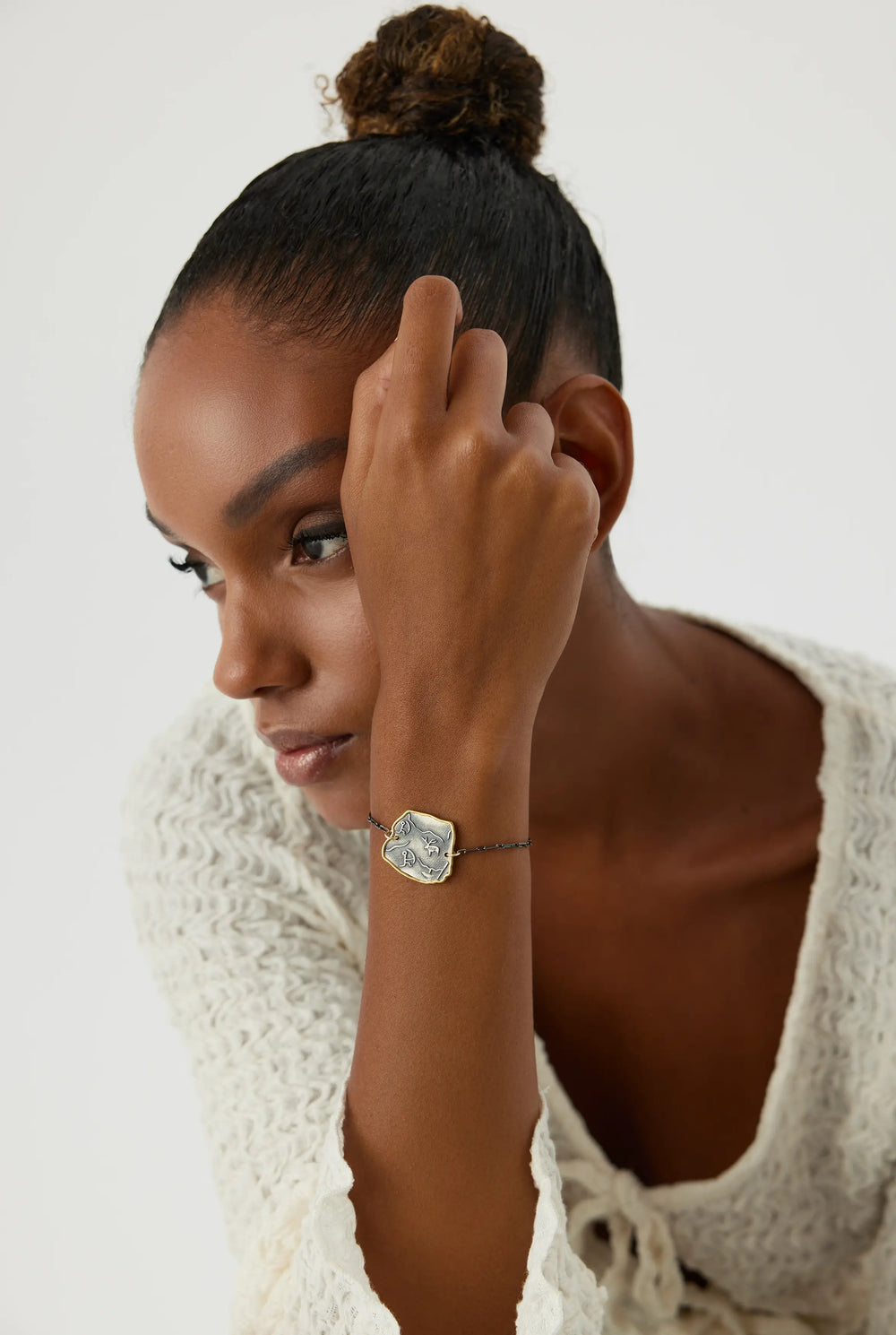 Ancient Symbol Bracelet – 18K Gold-Plated Sterling Silver with Black Chain