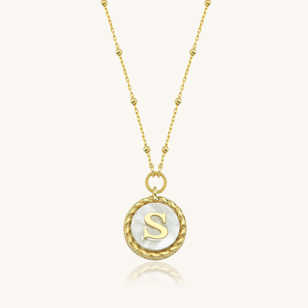 Mother of Pearl Initial Necklace – 925K Sterling Silver Custom Letter Necklace