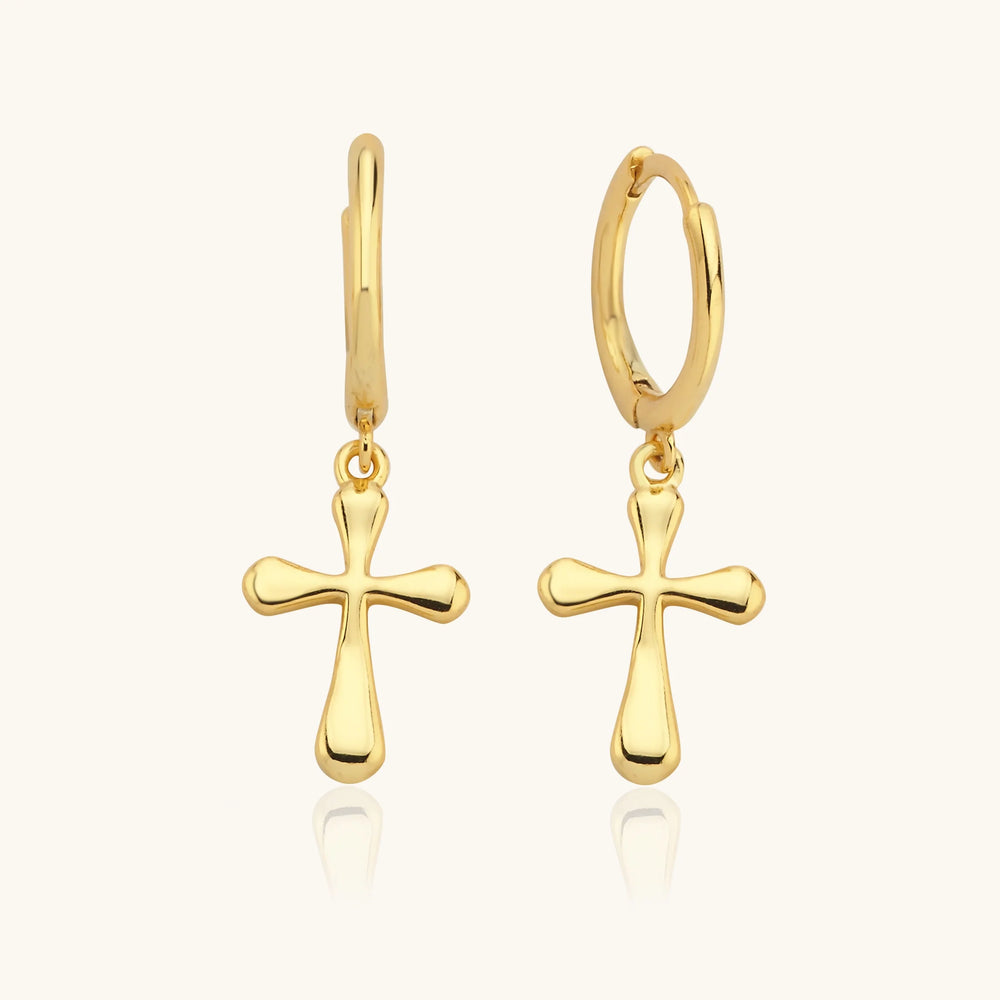 Gold Cross Charm Hoop Earrings – 18K Gold-Plated Sterling Silver Religious Jewelry