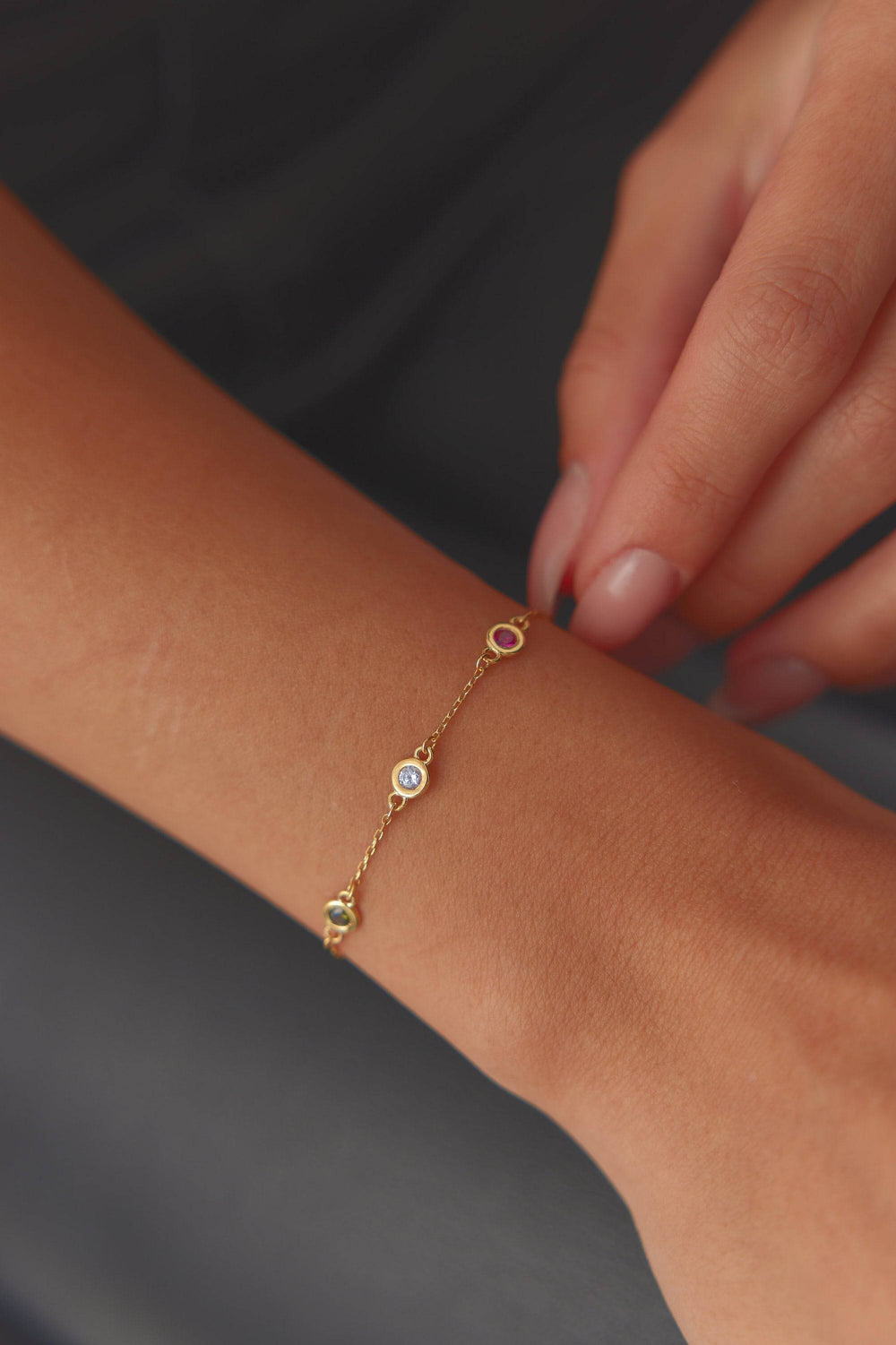 Our Multi-Birthstone Family Bracelet is a gorgeous piece of jewelry that effortlessly combines fashion with sentimental significance. This exquisite bracelet is intended to commemorate significant occasions in your life, the people you care about, and the individual qualities that each birthstone symbolizes. Whether you're searching for a special present for someone special or a timeless item for yourself, this bracelet is a timeless addition that will be cherished for years to come.
