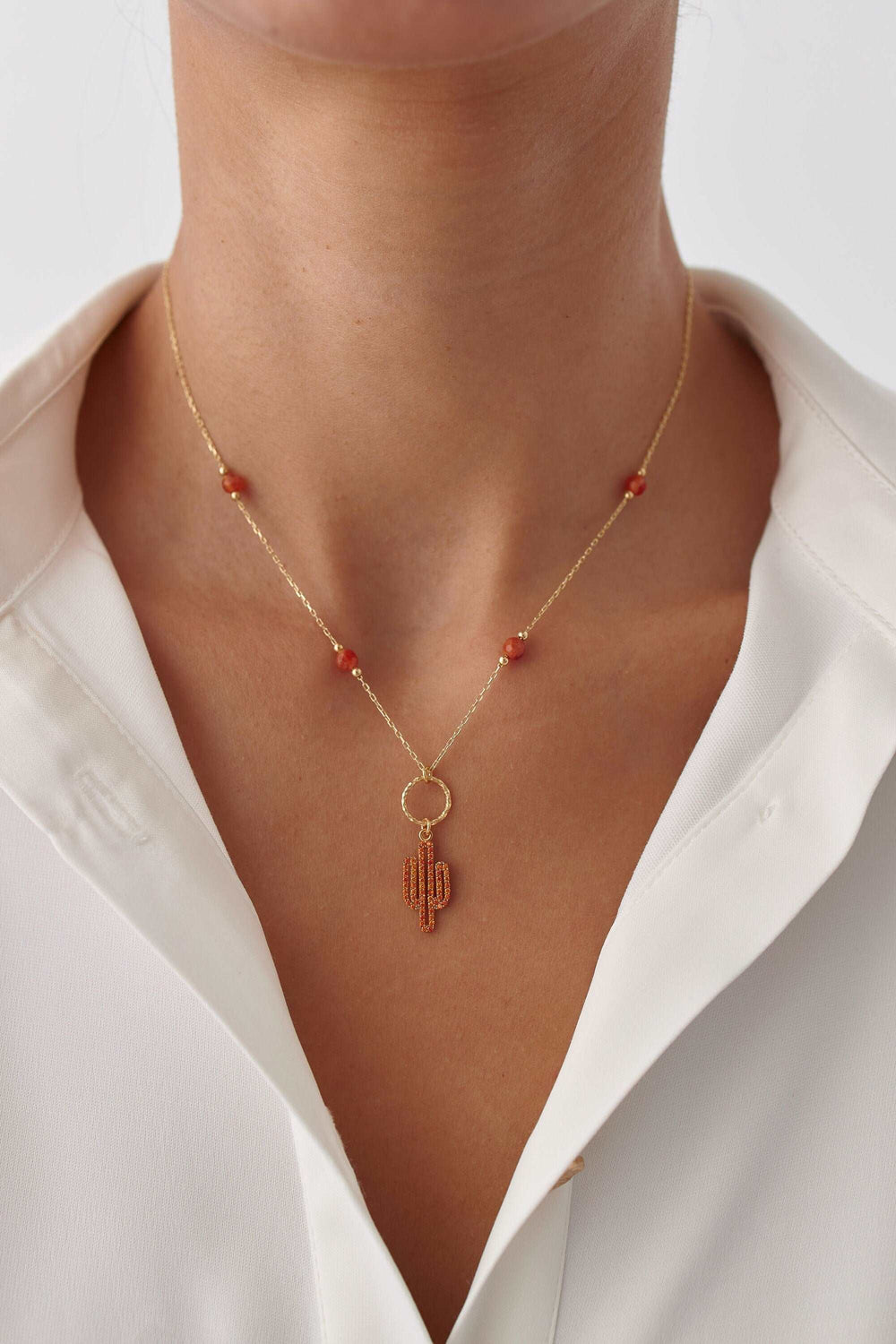 Add a touch of nature-inspired elegance to your jewelry collection with this charming Cactus Necklace. Crafted from high-quality 925K sterling silver and plated with 18K gold, this delicate necklace features a beautifully detailed cactus charm suspended from a sleek gold chain, accented with glossy black beads. Perfect for layering or wearing solo, this piece is a versatile addition to any outfit.
