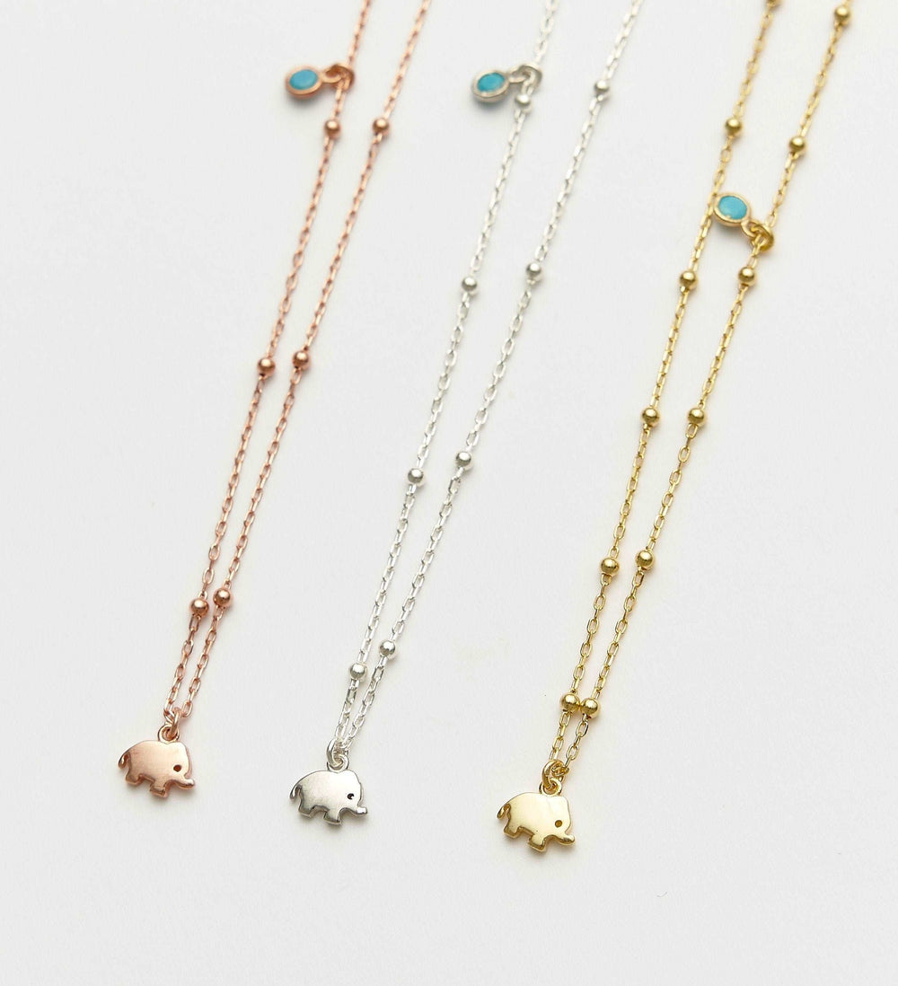 Set against the backdrop of the elephant charm is a mesmerizing turquoise stone, renowned for its calming properties and vibrant color. Each stone is carefully selected for its quality and beauty, ensuring that every necklace is truly unique.
