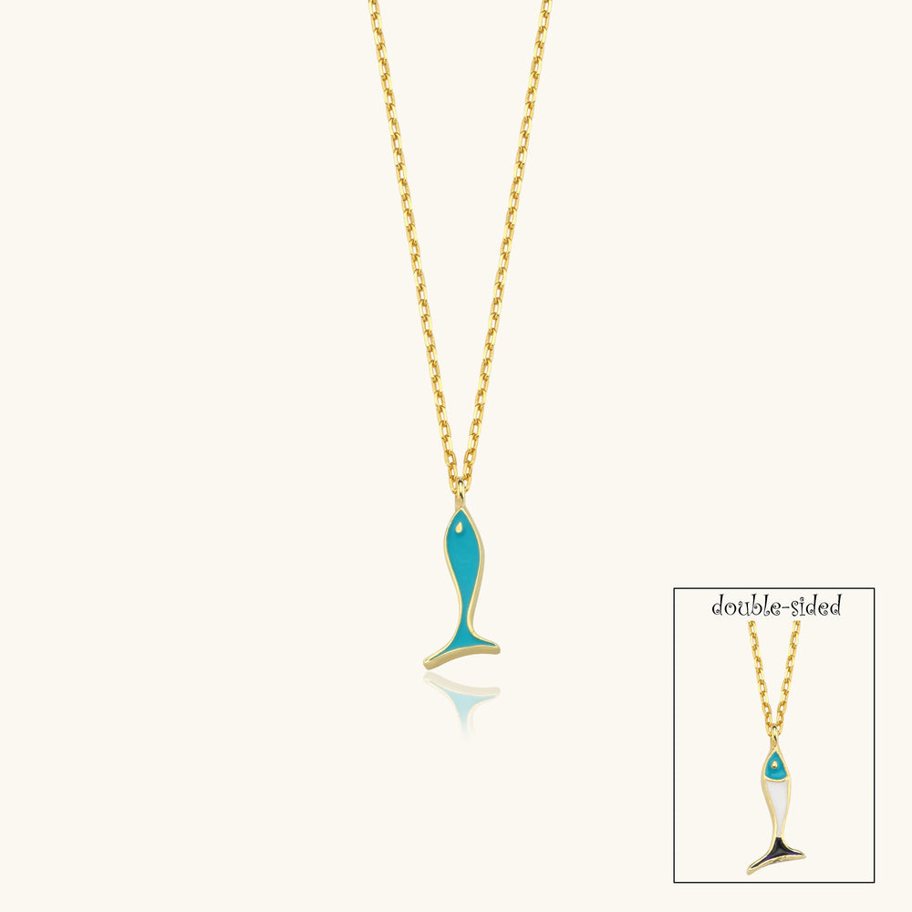 Double-Sided Fish Necklace - 925K Sterling Silver with Enamel