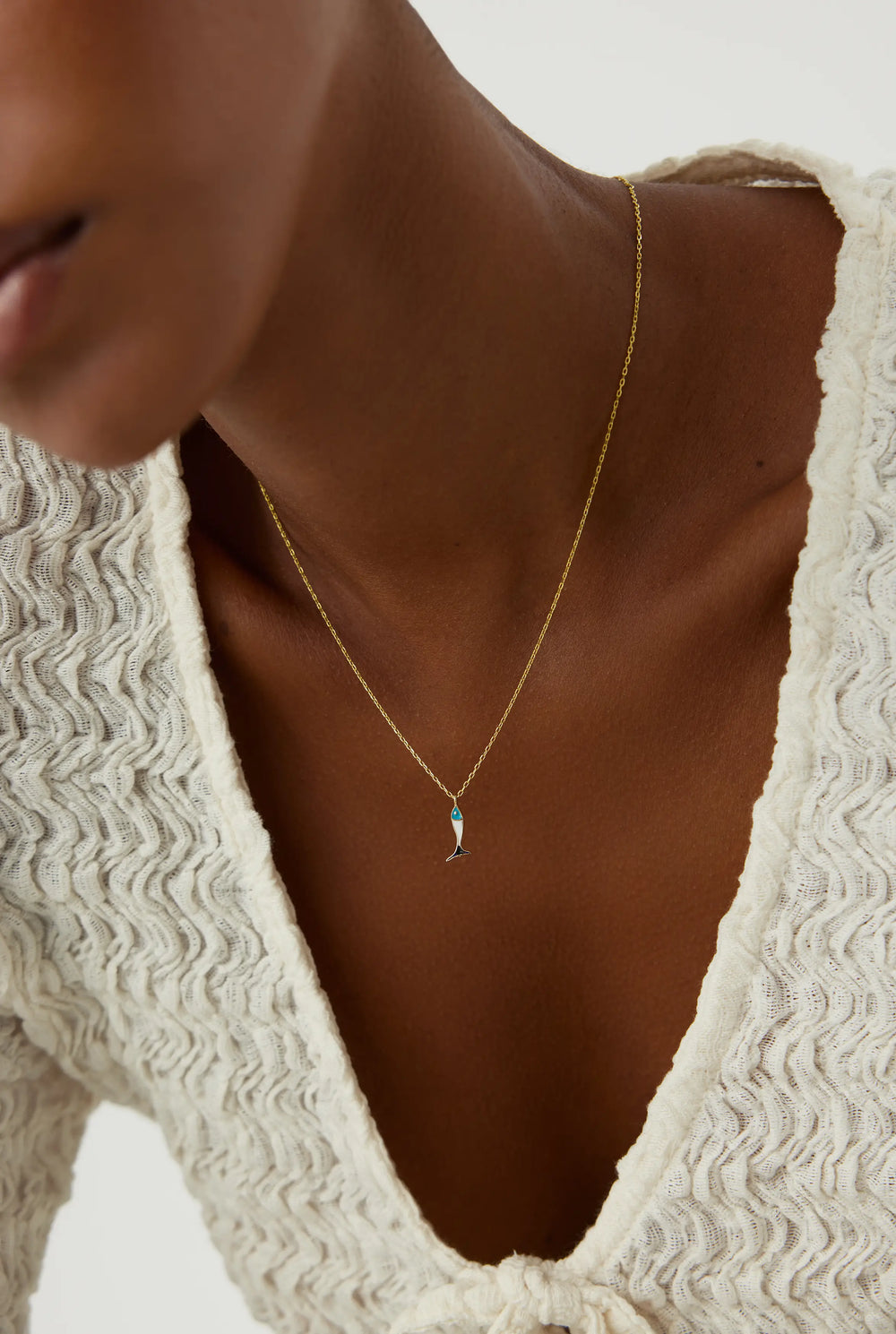 This double-sided fish necklace is ideal for those who love the ocean or simply enjoy unique, eye-catching jewelry. The vibrant turquoise enamel adds a playful touch, while the polished silver side offers a more classic look. It’s like having two necklaces in one, making it a versatile piece that complements a variety of styles.