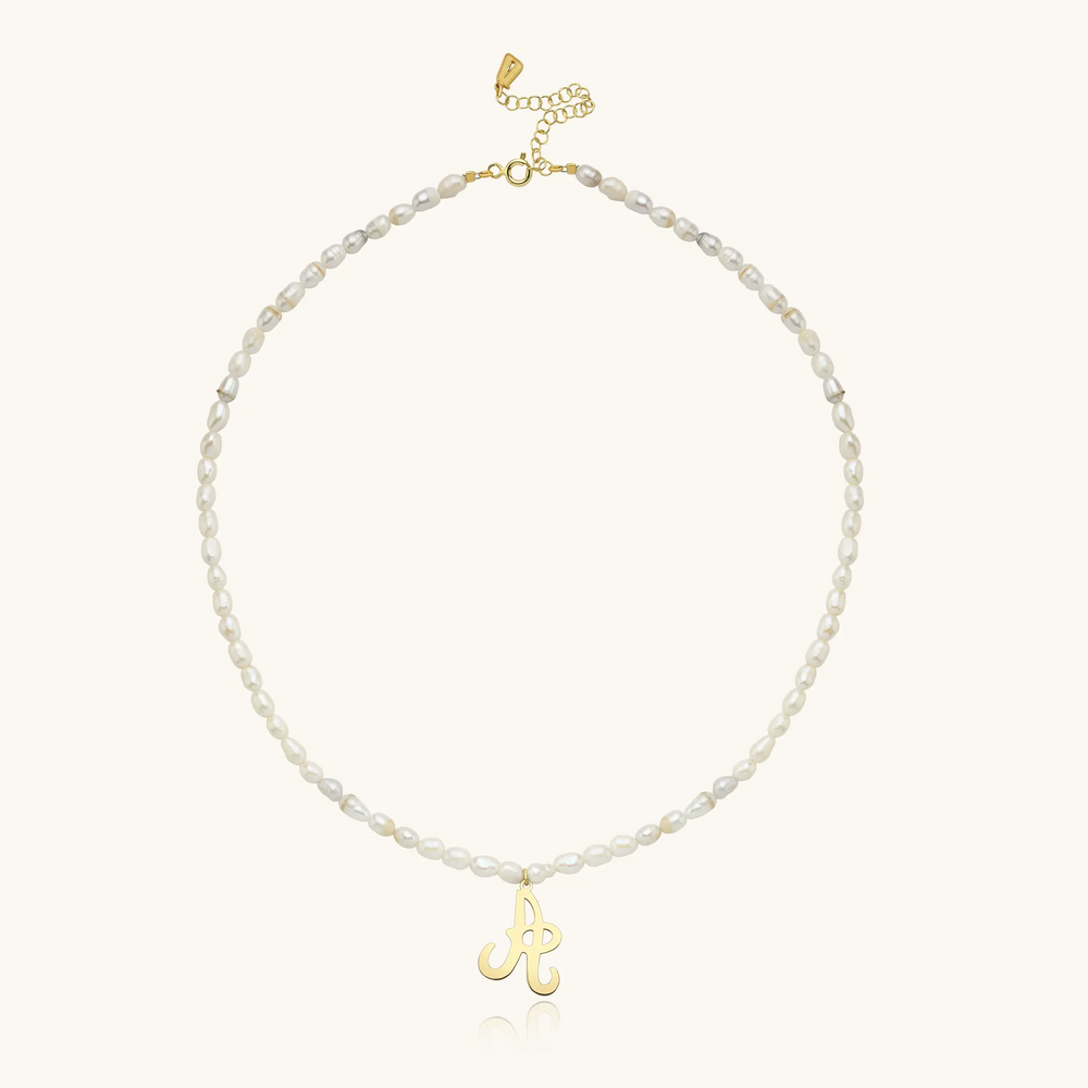 Handmade Pearl Beaded Initial Letter Necklace • Pearl Beaded Silver Letter Charm • 925K Sterling Silver Pearl Beaded Necklace for Women