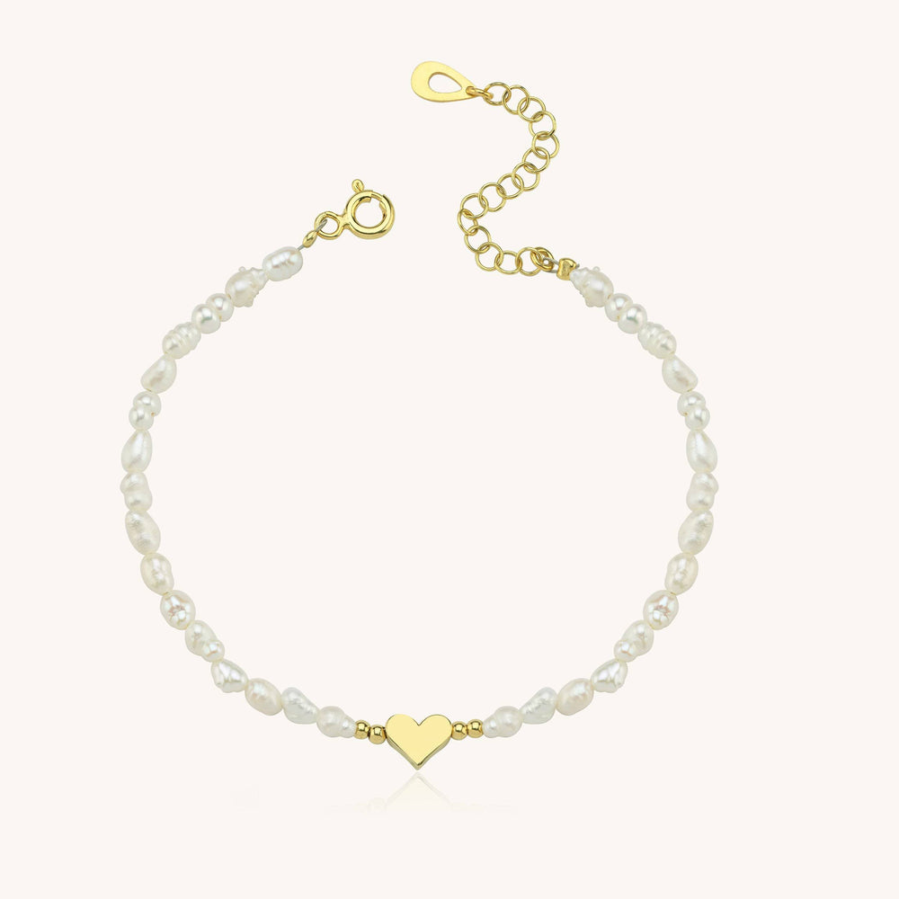 Add a touch of sophistication to your wrist with this Gold Heart and Freshwater Pearl Bracelet. Crafted from high-quality 925K sterling silver, this bracelet features lustrous freshwater pearls delicately strung together, highlighting a polished gold heart centerpiece. The adjustable chain ensures a perfect fit, making it a versatile accessory that can be worn daily or for special occasions.