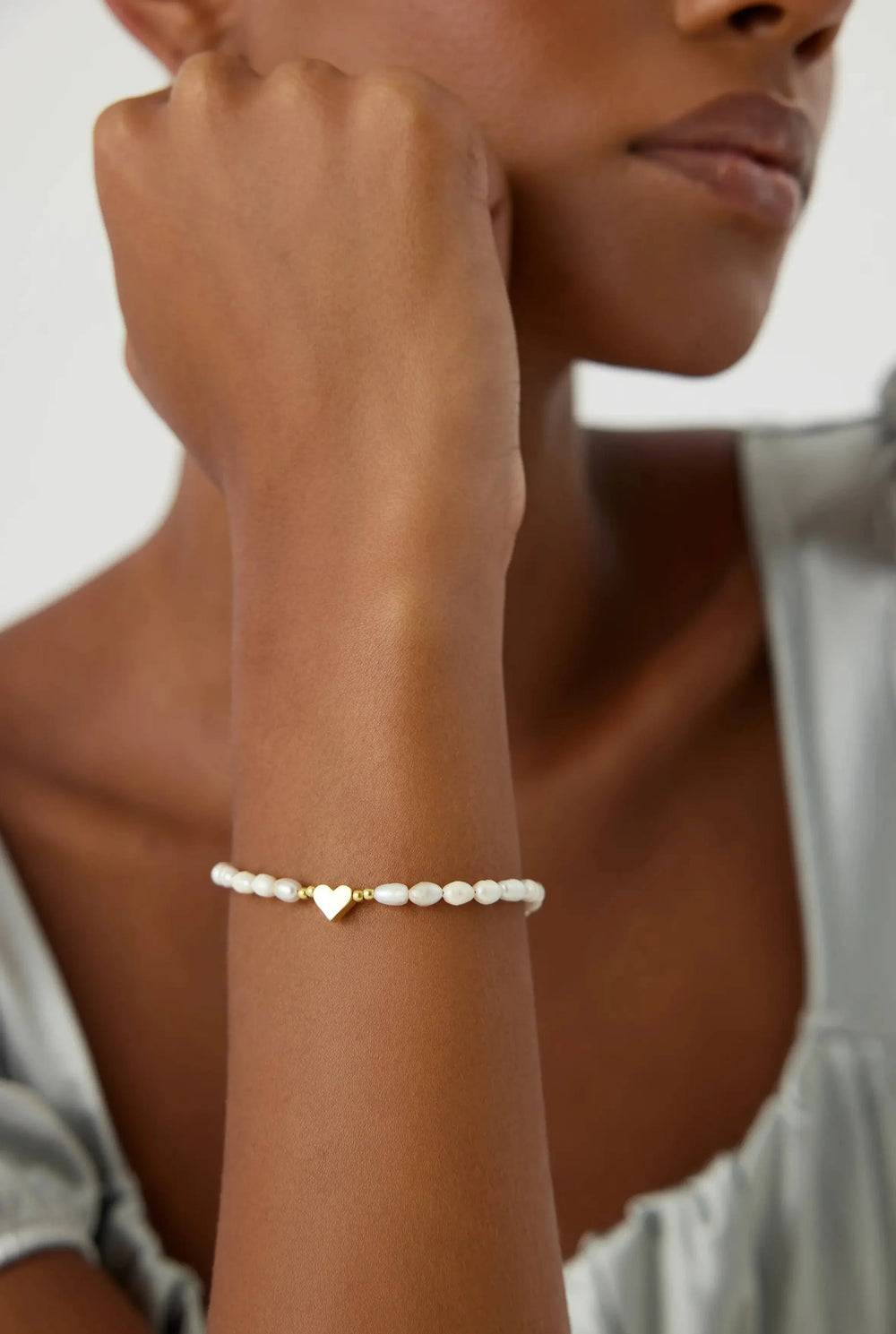 Gold Heart and Freshwater Pearl Bracelet – Elegant 925K Sterling Silver Jewelry