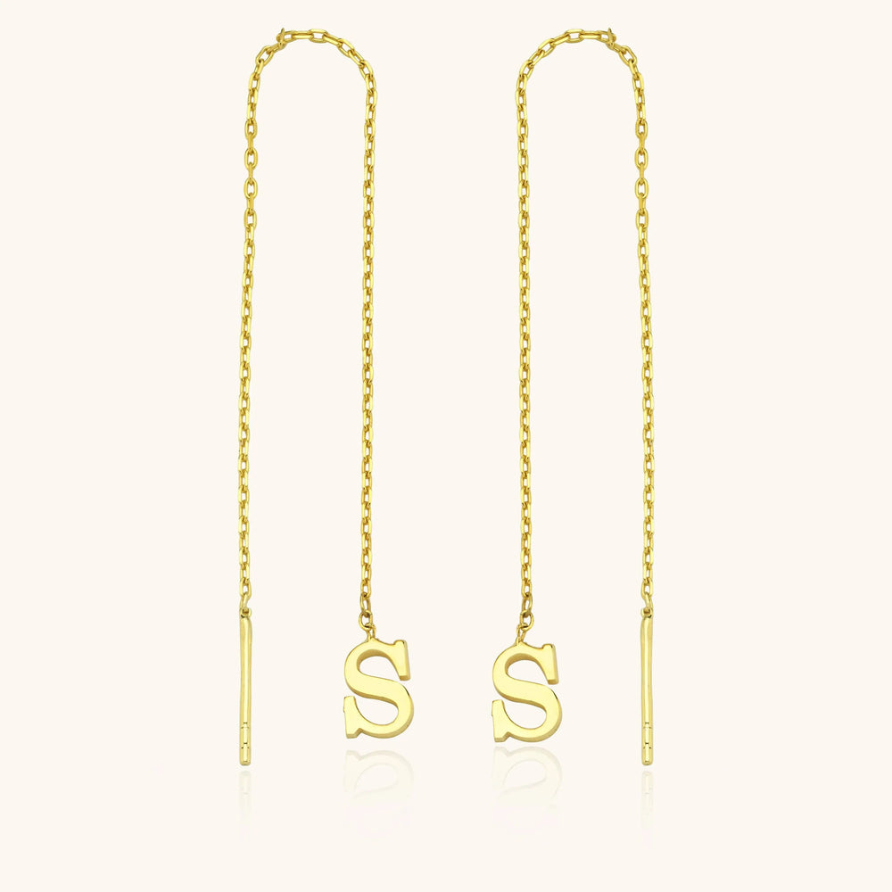 Gold Initial Threader Earrings - 18K Gold-Plated Sterling Silver Personalized Earrings