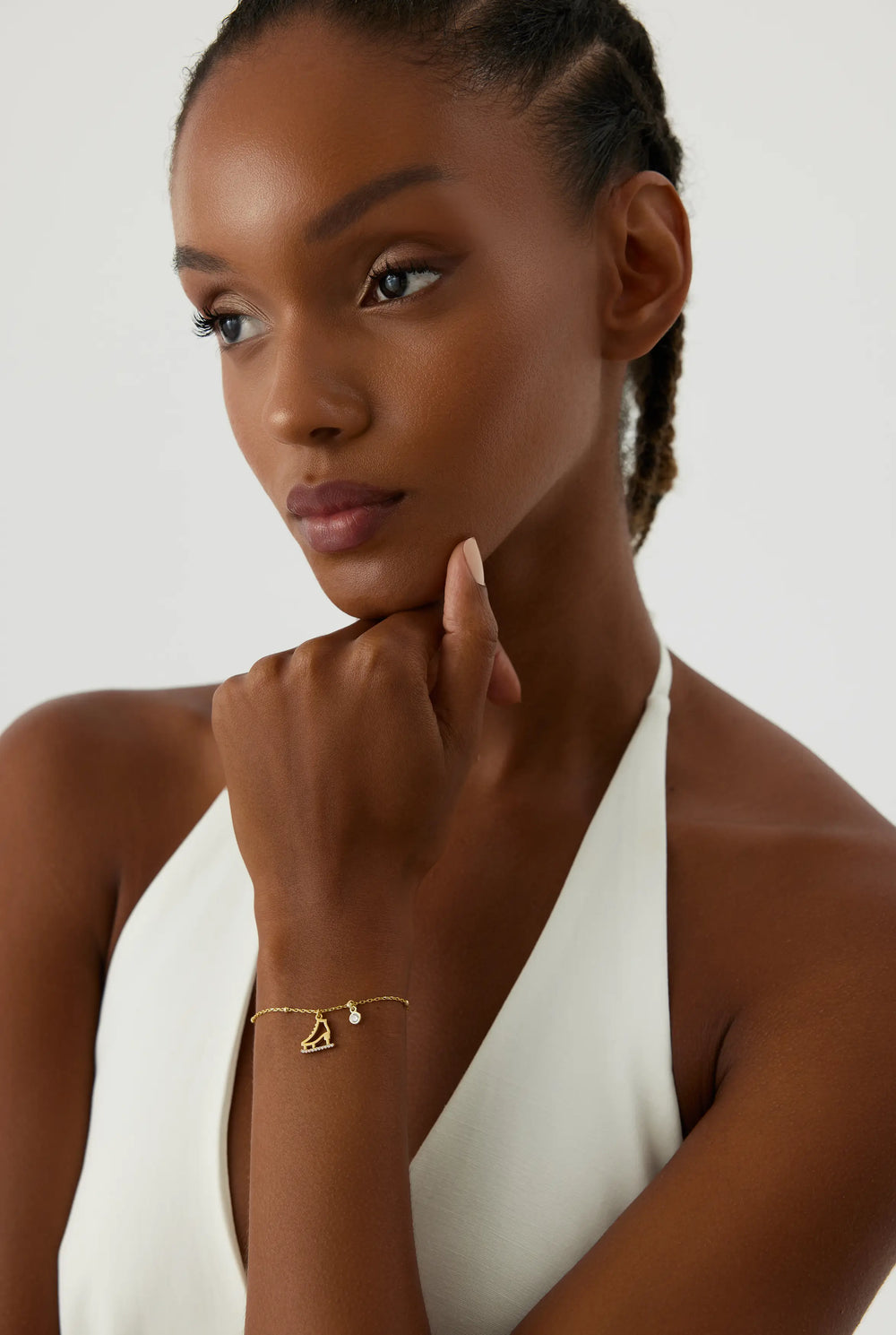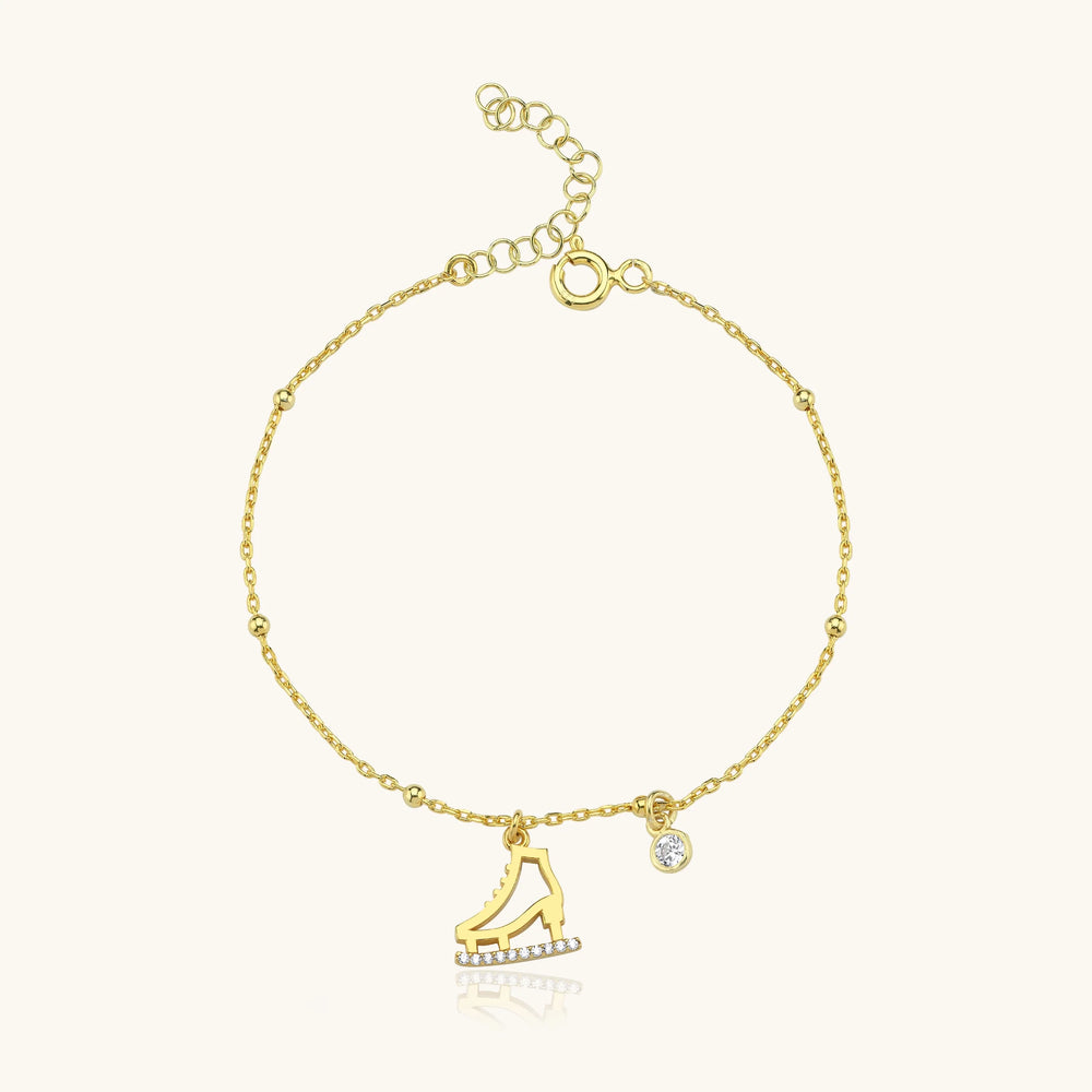 Ice Skate Charm Bracelet – 18K Gold-Plated Sterling Silver with Crystal Accent