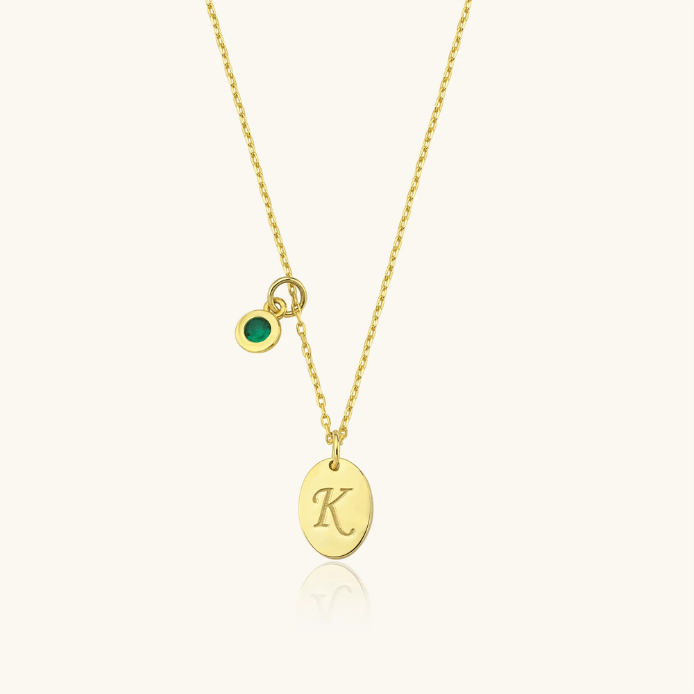 Initial Birthstone Necklace – 18K Gold-Plated Oval Pendant with Birthstone Charm