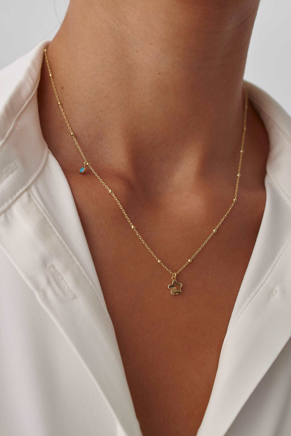 With customizable options, you can create a unique piece that suits your style. Choose from different finishes, birthstones, and lengths to make this necklace truly yours. Whether you’re gifting it or keeping it for yourself, the Minimalist Star Figure Turquoise Stone Necklace is a meaningful and personalized accessory.