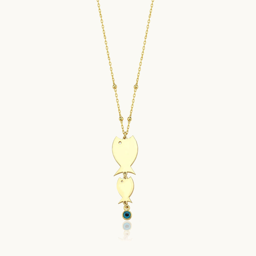 Mother Fish and Baby Necklace with Evil Eye - 18K Gold-Plated Sterling Silver