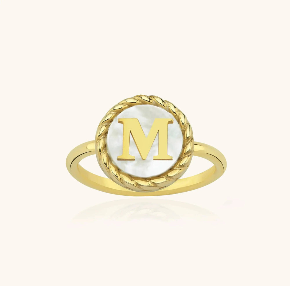 Embrace personalized elegance with this Mother of Pearl Initial Ring—order yours today to add a personalized touch to your style!