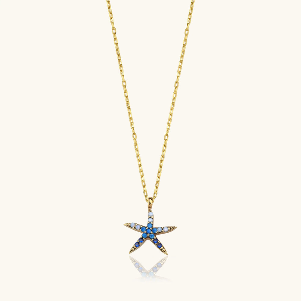 Starfish Necklace - 18K Gold-Plated Sterling Silver with Blue CZ Stones