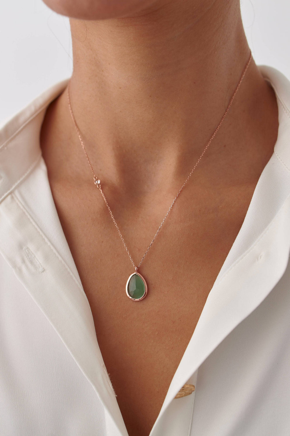 Teardrop Emerald Necklace – 18K Gold Plated Sterling Silver Pendant Necklace